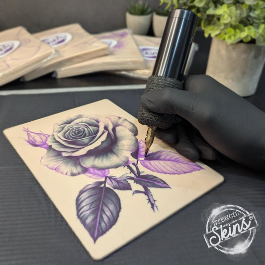 Stencil Skins® Pre-printed Tattoo Practice Skins with Stencils (Pack of 5- Realistic Rose Set)