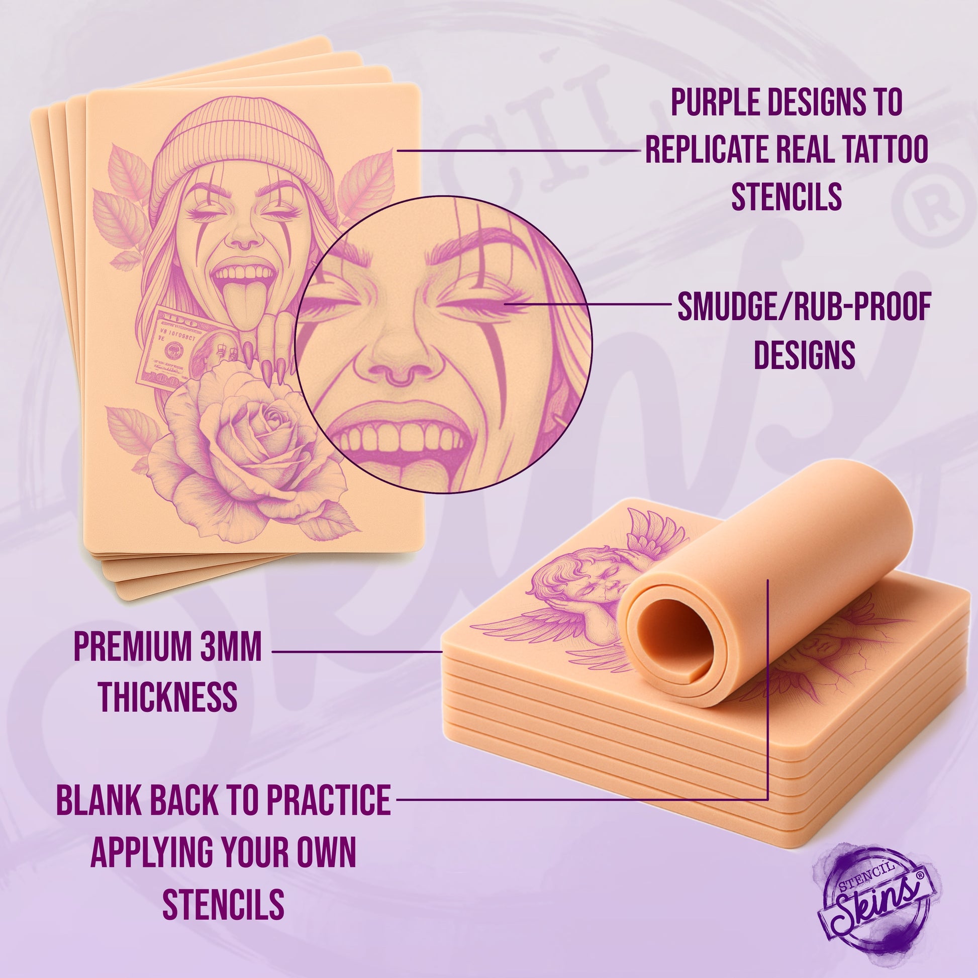 These silicone pre-printed tattoo skins are ideal for both beginners and professionals. They are perfect for perfecting a variety of tattooing techniques, whether you are a beginner or an experienced tattoo artist. With these tattoo practice skins, you can practice your skills without worrying about the stencils rubbing off, and you can practice a range of tattooing techniques.