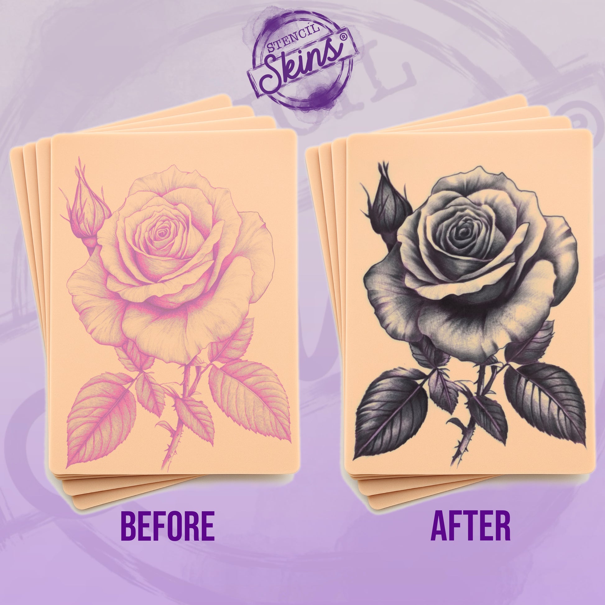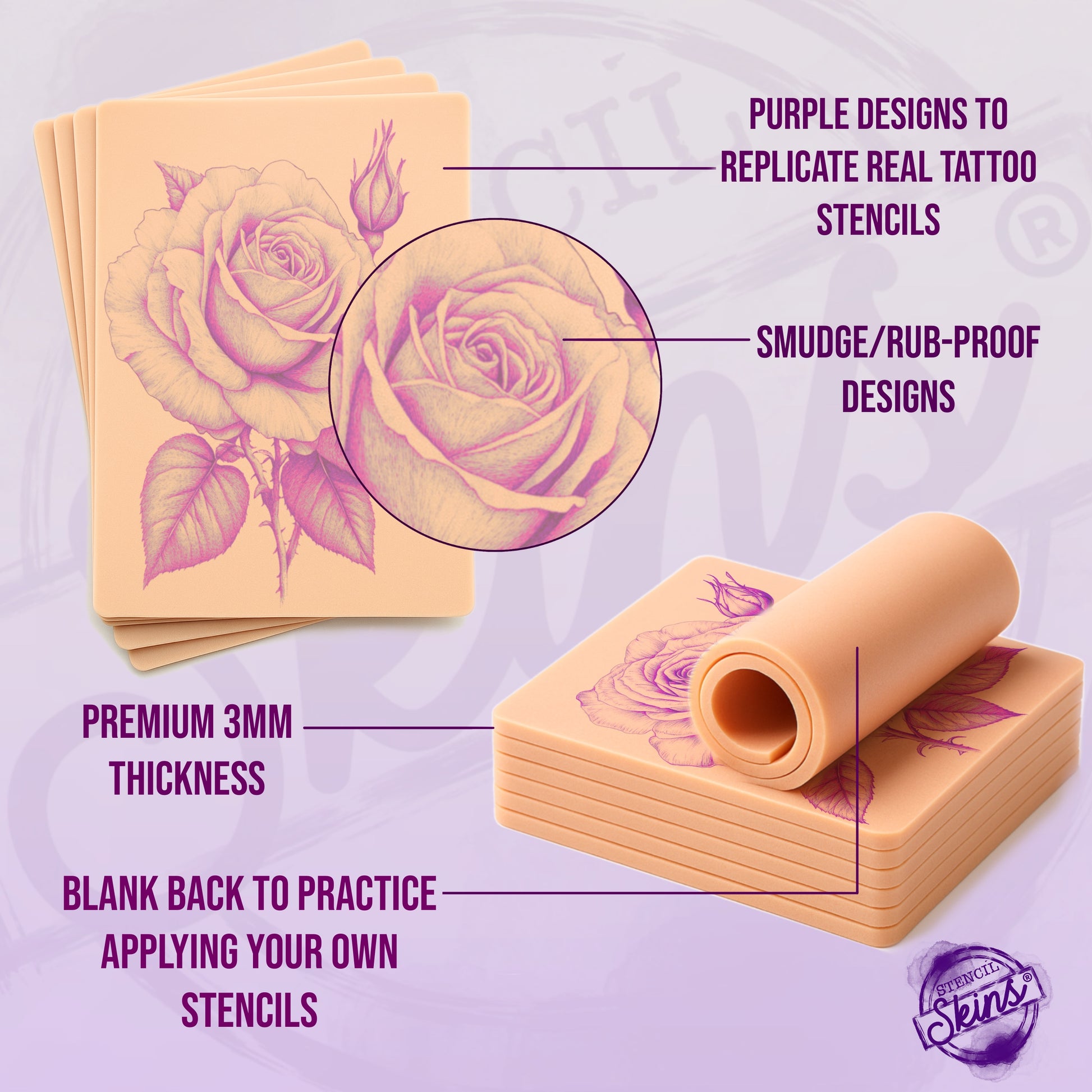 Our silicone tattoo skins are 3 mm thick, providing a realistic feel for practicing shading, lines, and colour packing. The size of each tattoo practice skin is 15 cm wide x 20 cm high, making it the perfect size for practicing your skills. Our unique Realistic Roses design on each custom tattoo practice skin offers a range of creative artwork for practice.